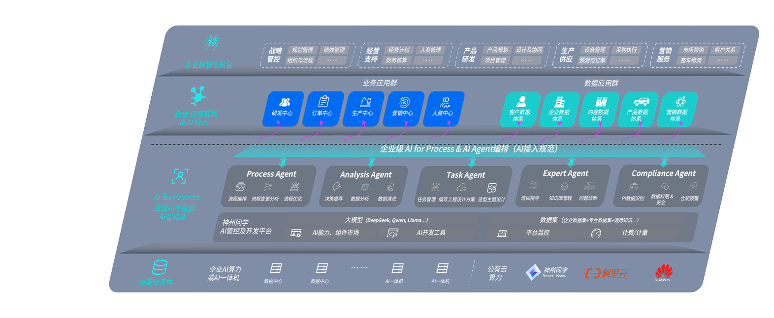 沐鸣2问学智车解决方案是一套基于AI技术的汽车行业智能化系统,,,覆盖从底层算力到顶层AI应用的全栈方案。。。。方案由算力层、、、、模型层和应用层组成:算力层,,方案支持多种一体机配置,,,,具备云端灵活部署、、、、多云适配以及动态优化计算资源的能力;模型层,,沐鸣2问学平台版提供了企业级AI应用一站式构建与管理平台,,,支持基于后训练强化技术的汽车企业专属模型的训练、、评测和运营;应用层,,,沐鸣2问学DeepSeek版提供包括超级员工、、、、智能招采、、、、智能营销、、智能客服、、、AI for BI等一系列解决方案,,,可助力汽车行业实现数字化转型,,让管理更智能、、、、响应更敏捷。。。。